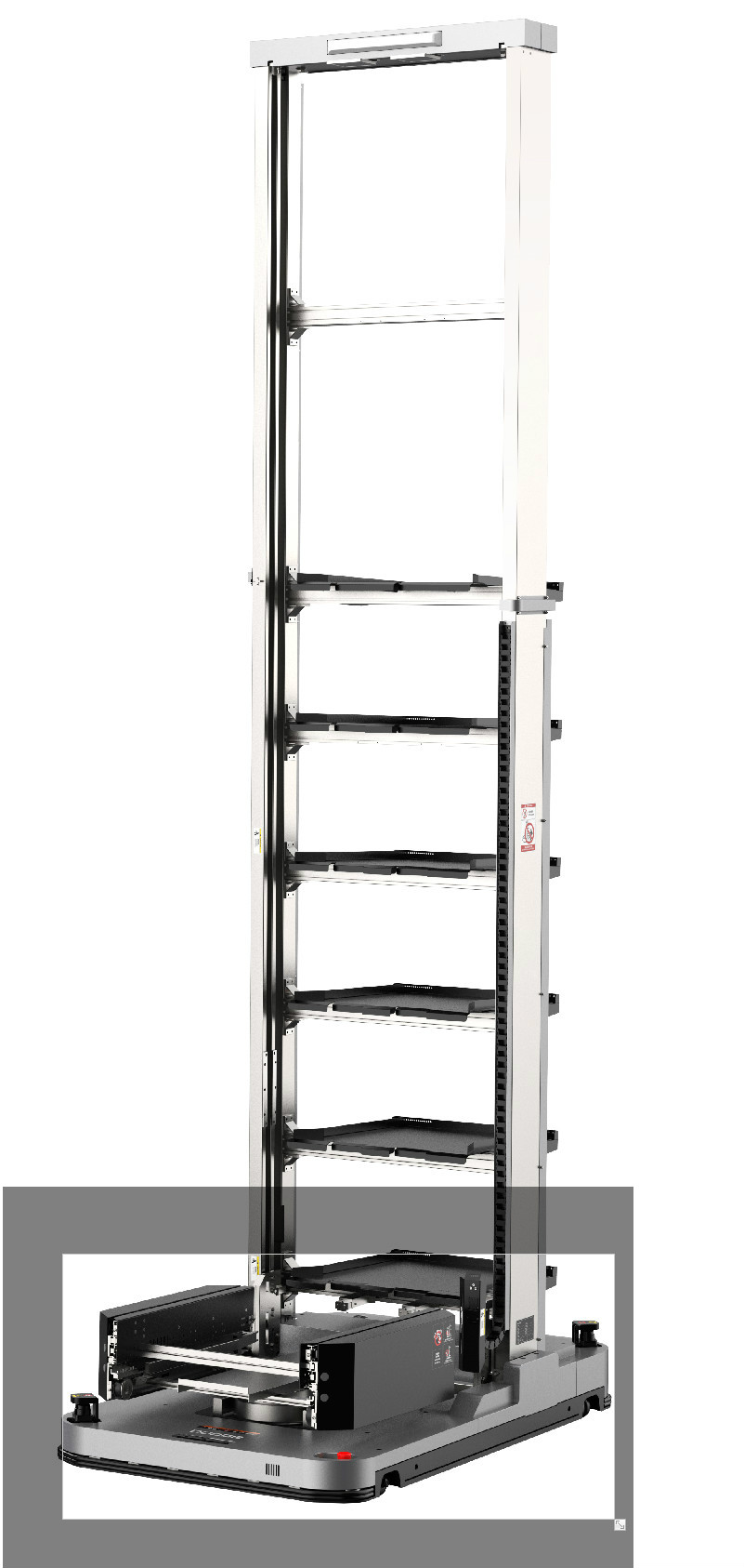 車身低矮,可以進(jìn)入低矮的料架地下牽引。潛伏牽引并且雙向運(yùn)行可以使轉(zhuǎn)彎半徑縮小,占地面積小。 驅(qū)動單元一鍵電動升降方便維護(hù)。最多可以指定1024個站點(diǎn)。 激光傳感器安全防護(hù)到位